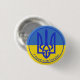 Show your support to Ukraine with this inspirational button. This round pin or badge features the trident, the national symbol of Ukraine. The blue text features the words, "I stand with Ukraine".