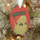 This oval ornament is red and green, perfect for a traditional Christmas Decor.