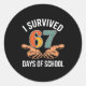 I Survived 67 Days Of School Funny 100th Day Desig Classic Round Sticker