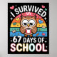 I Survived 67 Days Of School Funny Coffee Owl Scho Poster