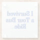 I Survived a Tour Bus Ride coasters are for drinkers who are tourists, drivers, tour guides, and humour fans. I Survived a Tour Bus Ride is Steamy Raimon original concept and calligraphy art.