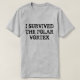 Did you experience sub-zero temperatures? Numbing winds? Driving snow?  Did the battery in your car die because it just couldn't take it anymore? Did your thermometer freeze in protest? Did you live to tell the tale? If so, commemorate your experience with this "I Survived the Polar Vortex" t-shirt!  Let others know that you are one tough cookie -- it'll take more than a pocket of Arctic air to slow you down!