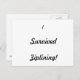 I survived! What was it that you survived? So far very few people know you managed to get through it, so use this great survival design to show everyone what it was! Add your own text for a custom “I survived” design, upload a photograph or graphic, make this design yours! Great for groups, bands, schools, and more too!I survived ziplining! Change the font if you'd like different lettering