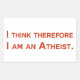 I think therefore I am an Atheist. Rectangular Sticker