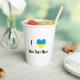A heart shaped flag of the Ukraine is used in place of the word LOVE. The design was created to allow the buyer to personalise with the buyer's own text as to what is loved. The buyer can, also, customise a gift. It would read, I LOVE YOUR TEXT. The Ukrainian flag has a large, blue space on top, with a large yellow space below.