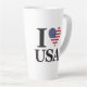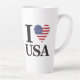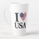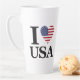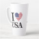Savour your favourite latte, tea, or hot chocolate in style with this elegant "I ❤️ USA" latte mug. Its sleek, tall design beautifully showcases the iconic "I ❤️ USA" graphic, featuring the American flag within a heart. Perfect for cosy mornings, patriotic celebrations, or as a thoughtful gift for any proud American, this mug is an ideal way to combine your love for beverages and country.