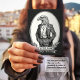 Black and white bird art illustration of a bald eagle dressed in a suit, in an oval shaped frame with laurel leaves, on a black background with a texture covering the whole image. I Voted 2024 is the theme of this postcard for the United States presidential election. The year may be replaced as necessary. This image is based on generative content of which I have converted into a vector illustration, composed the image with design elements, and added a texture and a background.