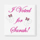 Show your support for Sarah Palin with this "I voted for Sarah" design.