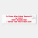 These bumper stickers are the best around. Thick stock with good sticky glue backs. Printing is awesome. Excellent job printing. Bold and clear.
