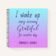 A lovely notebook for displaying your gratitude, this item features lined paper on the inside with a blue and purple ombre background. "I wake up every morning grateful for another day" is written in fun cursive font. The bottom features a place for entering your name. You can modify the inside of the paper with a variety of choices. Personalise your gratitude notebook today!