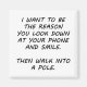For the sarcasm lover in all of us. Check out this witty “I Want to be the Reason You Look Down at Your Phone and Smile. Then Walk into a Pole.” design on apparel and gifts.