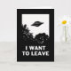 "I Want To Leave" UFO graphic designed by bCreative shows the silhouette of a flying saucer over the trees! This makes a great gift for family, friends, or a treat for yourself! This funny graphic is a great addition to anyone's style. bCreative is a leading creator and licensor of original, trendy designs and properties. ©LCT Creative. License from bCreative.com