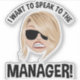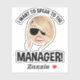 I Want To Speak To The Manager! This funny quote accessory is a great gag gift for the Karen in your life. Karen wants to talk to the manager! Perfect for a man or woman who has a sarcastic sense of humour, and love viral memes. Karen is extra-entitled, annoying and won't calm down. Make your friends laugh with this meme design! Features a cartoon graphic of an angry Karen face.