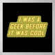 Everyone's a gamer these days. D&D doesn't get you beat up, and the football players play video games. A fancy tech toy, such as a graphing calculator, would get you labelled, yet now having an mp3 player or touchsceen phone is the latest style. Everyone everywhere is embracing technology in their everyday lives. Somehow, somewhere, it became cool to be geeky. You were a geek before the trends made geeks cool. You played Zork, had a graphing calculator and listened to music outside the norm. Be proud of it. You helped lead the way for a revolution.