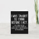 I Was Taught To Think Before I Act Funny Sarcasm S Card