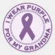 Purple ribbons are used to promote awareness for lupus, sarcoidosis, and fibromyalgia. Purple awareness ribbons also promote education and remembrance for violence against women. Purple ribbons are also used to promote domestic violence awareness, childhood stroke awareness, cystic fibrosis awareness, Alzheimer's disease awareness, and pancreatic cancer awareness. Purple ribbons symbolise Worker's Memorial Day. This unique awareness design features one large purple ribbon encircled by a lot of small purple ribbons. The text around this circular design reads I Wear Purple For My Grandma. This unique design is a great way to show awareness support.