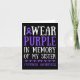 I Wear Purple In Memory Of My Sister Overdose Awar Card