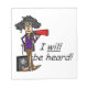 Funny attitude T-shirts, tote bags, cards, mugs, stickers, keychains, keepsakes, mousepads, and more with Stella proclaiming she will be heard!