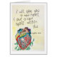 Little purple bird sitting on the top right of a human heart, with green vines growing underneath it. Done in watercolors.