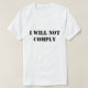 Tired of the government telling you what to do? Let others know that you will not comply with unlawful regulations with this "I Will Not Comply" design.