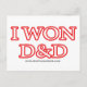 There is but one accomplishment in Roleplaying to which all aspire, but few have ever attained! To win D&D! Let the world know, you posess the secret power! You won Dungeons and Dragons! Add some gaming humour to your life with this funny RPG design.