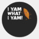 I Yam What I Yam Funny Food Lover Classic Classic Round Sticker
