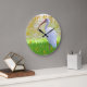 This clock is a great gift idea. It is sporting an Ibis standing on one leg in cut green grass near a waterway. Remove the number template to order the clock without numbers. Be sure to check out the smaller 8 inch and 10.75 inch diameter options.