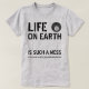T-shirt grey with black graphics and "LIFE ON EARTH IS SUCH A MESS IT FILLS OUR HEARTS WITH PAIN AND STRESS" with I-BONE LTD. logo. There are those who believe that they deserve to have the lion's share of everything, leaving everyone else with the little bit that is left. Many are afflicted with a greed so extreme that it causes them to misuse our planet in a very abusive way. Soon our earthly home will be an unliveable place. This form of greed is a rare kind of insanity.