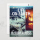 Postcard with white graphics and picture of New Orleans after Hurricane Katrina also with burning wildfire with "LIFE ON EARTH IS SUCH A MESS IT FILLS OUR HEARTS WITH PAIN AND STRESS" with I-BONE LTD. Many are afflicted with a greed so extreme that it causes them to misuse our planet in a very abusive way. Soon our earthly home will be an unliveable place. This form of greed is a rare kind of insanity.