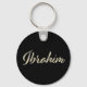 Ein sehr schöner edler personalisierter Button Schlüsselanhänger im whitegold Lettering Look auf schwarz für Ibrahim.