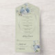 Ice Blue Bohemian Flowers on Sage Green All In One Invitation