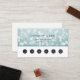 Bubbly chic loyalty cards feature a background pattern of bokeh lights in wintry pale ice blue, with your custom heading, loyalty offer terms, and six punchouts. Shown with "enjoy 20% off after five visits". Personalise the reverse side with your business contact information. For a metallic look, we recommend upgrading to the Pearl finish paper.