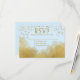 An elegant pastel blue and gold RSVP card featuring gold confetti dust and smoky gold accent at the bottom.