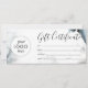 Blue, grey and black marble textured background. Add your logo to the front. The back of card matches the front colour. You can change the font. Click "Personalise This Template" and at the bottom of the form, click "Edit Using Design Tool" to change the font and edit your design in more detail. On the back, you can put your company name, address and email info.