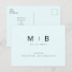 Simple & Sleek Ice Blue with Black Monogram Save the Date. Wedding. First and Last Names. Modern. Tropical. Postcard.