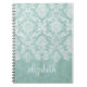 Ice Blue Vintage Damask Pattern with Grungy Finish Notebook