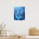 Poster of a magical castle made entirely of ice. A frozen waterfall descends from the keep's foundations to become icicles at its end. Pine trees flank the castle as the Sun refracts through the ice creating beautiful blue lights that seem to come from the heart of the keep... maybe the frozen dreams trying to break free. The image was generated with Leonardo.ai and altered by me.