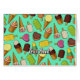 Ice cream icons. Seamless pattern. Custom background colour. Custom text.