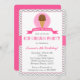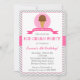 Here's the Scoop! Pink and Grey Ice Cream Birthday party invitation with chevron pattern background.
