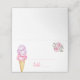 Fun table number place card for your bridal shower featuring watercolor illustration of pink and purple ice cream scoops on a waffle cone.