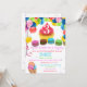 A cute and colourful illustration of brightly coloured balloons that form a frame around a cupcake that has macarons below it and a template with your Childs age on the icing. There is a delicious ice cream cone with three scoops in it at the bottom edge. Personalise the wording and don't forget to remove the template on the back if you don't need to add extra information.