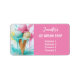 Large ice cream cone with three colourful scoops of ice cream, image generated with the help of AI. You can easily personalise this label with your own name and address and if you want you can change the pink background colour in any colour you like by editing the product.