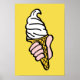 Ice cream cone in a cartoon pop-art style design on a yellow background. Big bright Ice cream cornet motif graphic on a poster.