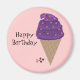 A cute birthday design featuring a big ice cream cone in shades of purple with pink and chocolate sprinkles on a pink background.