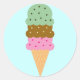 These Ice Cream Cone stickers feature a triple scoop ice cream cone (strawberry, chocolate white chocolate chip and mint chocolate chip) on a light blue background. Click on "Customise it!" to change background colour to whatever you'd like.