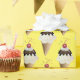 Chocolate and vanilla ice cream cone with colourful sprinkles .