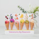 Welcome to class, teacher message cards for students. Ice cream cones image on the front shows a colourful variety with scattered fruit and nuts. Personalise with text along the bottom such as, “Welcome to my classroom” or “Welcome to First Grade”, or any text that will fit the space. On the back, use the paragraph message template to create an upbeat note for the students. Let them know how excited you are for the first day. This design is also available as an instant download to share digitally.
