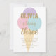Ice Cream Gold Foil Calligraphy Birthday Party Invitation