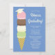 Celebrate your graduate with this cute ice cream social theme graduation party invitations! The ice cream cone features a tiny mortar board graduation cap. Perfect for a high school, college or 8th grade graduation party for a sweet treats enthusiast!