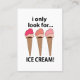 Ice Cream I Only Look For Ice Cream Business Card original design by Nisha Prabhu. Fully Customisable. Personalise with your details. Make a sweet impression with a business card that says it all! Ideal for ice cream enthusiasts, vendors, or entrepreneurs in the frozen treat industry, this card is more than just contact information—it's a statement. Featuring a fun and vibrant design, it captures the joy of ice cream and invites conversation. Whether you're networking at food festivals, connecting with suppliers, or simply sharing your passion with fellow ice cream lovers, this card will leave them craving more! Bold colours and playful graphics that reflect your love for ice cream.